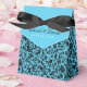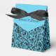Caixas de lembranças de casamento pretas e azul turquesa lindas. Você pode alterar ou remover o texto, alterar a cor do fundo e a fita para personalizar esta caixa de lembrança de casamento elegante azul turquesa e preta.