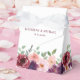Elegante caixa de favores de casamento com aquarelas de vermelho-burguento, rosa-pinto-pinto-púlpito-pincel com folha verde-clara, seus nomes e data de casamento em simples tipografia moderna e "obrigado você" em um roteiro romântico na moda.