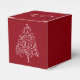 Personalize a caixa do Casamento no inverno da Árvore de Natal Vermelha festiva com os nomes pessoais da noiva e do noivo e a data da sua recepção de festa de noivado, chá de panela ou casamento de dezembro. Essas elegantes caixas de favoritos personalizados de inverno apresentam um intrincado design de árvore de xmas branco com fundo vermelho.