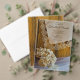 Personalize o charmoso lugar do campo de madeira Faux Barn e a caixa de favores rusticados de flores com os nomes pessoais da noiva e do noivo e a data e preencha com os favoritos para festas para sua recepção de chá de panela ou casamento. Estas caixas de adoração casuais, mas clássicas, do rancho ocidental apresentam uma fotografia floral acinzentada de uma flor seca de hydrangea, de um lenço vintage aparado de lenço branco, de colar de pérolas e de um véu branco com fundo de madeira marrom.