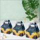 Marinho elegante, obrigado de casamento floral azul e amarelo você prefere uma caixa perfeita para uma festa de casamento azul-marinho inspirada pelas flores de girassol. Personalize facilmente esta caixa de favoritos rústica, apresentando girassóis contra um fundo de madeira adornado com luzes de cordas, com seus detalhes de eventos.