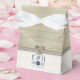 Estas caixas de favor são perfeitas para qualquer casal planejando um casamento romântico pelo mar. A design apresenta uma corda náutica amarrada num nó em forma de coração num fundo em estilo de madeira russa. O design simples pode ser personalizado para se adequar ao seu evento especial e será a caixa de presentes/favoritos perfeita para qualquer festa temática na praia, incluindo chás de panela, noivados, chás de casamento, festas de aniversário e muito, muito mais.