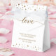 Personalize esta etiqueta de favor do casamento com os nomes da noiva e do noivo e a data do casamento. Personalizado, simples e elegante com confete de ouro impresso e Script de "Amor". Imprima seus convidados com esse toque pessoal para seus presentes.