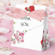 Caixas de lembrancinhas elegantes e simples com as palavras, obrigado, que podem ser personalizadas usando nosso modelo. É a maneira perfeita de expressar sua gratidão em um dia perfeito em tons de vermelho do pôr do sol, rosa desabrochando e branco inocente. Temos certeza de que o desenho da flor de cerejeira será apreciado por muitos e as cores combinam com a maioria dos temas de casamento. Desejamos a você um tempo mágico com muitos momentos bonitos. Navegue por nossa loja para encontrar ideias de presentes.