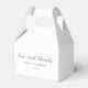Caixas de favoritos modernos com design simples com fontes clássicas de serifa e guião elegante. A design inclui "amor e obrigados" e seus nomes e data de casamento.