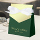 Caixa personalizada de favoritos de casamento verde e ouro.