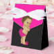 Adorável princesa rosa-quente, a menina afro-americana chá de caixas. Você pode adicionar texto, mudar a cor do arco e mudar a cor do flap para a sua escolha nesta linda caixa de favorecimento de uma menina étnica rosa e quente.