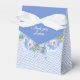 Linda caixa de presente de chá de bebê azul flor de milho ou ocasião especial, feita em azul flor de milho em pontos brancos, com uma aba azul sólida. Lindas ilustrações de flores de milho decoram a frente da caixa. Personalize o texto branco para ler o que você quiser.