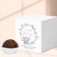 Um chá bonito de bebês favorece caixas com "Um doce pequeno obrigado" e "Um doce pequeno amendoim está a caminho" numa mistura de tipografia moderna e um roteiro de na moda com um inchaço cardíaco, e uma aquarela de um elefante de bebê rosa em uma coroa de verde sábio eucalipto verde verde. Personalize com o nome da futura mãe e a data do chá.