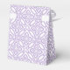 Caixas de lembrancinhas de chá de bebê cítricos atemporais com limões, com um padrão de fundo roxo e branco, baseado em uma impressão de azulejo vintage.