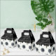 Caixas de favor no estilo Gable apresentam elegantes flores de anemona brancas e pretas em aquarela e folhas em um fundo preto e seus detalhes em letras chiques. Itens CORRESPONDENTES em nossa coleção.
