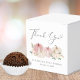 Festa de chá de menina elegante favorece caixas com "Obrigado" e "Uma Doce Pequena Abóbora Está a Caminho" em simples tipografia de cinza e uma escrita de cinza com um inchaço cardíaco e aquarelas de abóboras cor-de-rosa e creme e buquês florais.