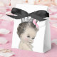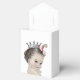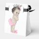 Caixas de lembrança para chá de bebê princesa fofa com bebê menina vintage usando uma linda coroa prateada. Você pode adicionar texto, alterar a cor do laço e adicionar uma cor de fundo de sua escolha para esta caixa de lembrança de chá de bebê princesa rosa.