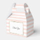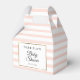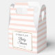 Com um fundo rosa e listras brancas, esta caixa de lembrança para chá de bebê elegante apresenta uma borda de foil dourado falso elegante emoldurando os detalhes do seu chá de bebê em tipografia chic e uma mensagem especial de agradecimento no verso. Criado por Thisisnotme©