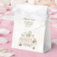 Estas caixas de favores bonito em estilo tenda são perfeitas para o seu presente de casamento ou de chá chá de panela. Eles incluem um bule de aquarela, um chá e um saco de chá com sotaques florais em tons de verde, rosa e marrom. O texto diz, "a mistura PERFEITA". Acima disso, no topo dobrado, há espaço para você personalizar com os nomes dos casais e a data do casamento, junto com "Obrigado!" ou outro texto. A caixa inteira também tem um aspecto aquoso ligeiramente maculado. Dica: Você também pode personalizar ainda mais para alterar as fontes ou reorganizar o design.