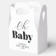 O chá de fraldas da tipografia favorece caixas com fundo branco comum, o título "oh baby" e um modelo elegante que é fácil de personalizar.
