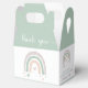 Caixa de favorecimento do chá de fraldas Boho com "obrigado você" em um roteiro branco de na moda com cinzas e uma bela cor de água abstrato de um arco-íris verde, laranja e lavanda com coração. Personalize com o nome da futura mãe e a data do chá.