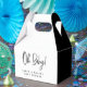 Celebrar o chá de fraldas casal com as caixas de favoritos personalizadas para os convidados. Design com tipografia moderna, preto e branco, neutra em termos de gênero, com as palavras "Oh baby!", elegante e chique. Nomes personalizáveis.
