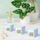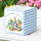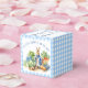 Peter Coelho com uma jaqueta azul e chá de fraldas de hortas favorece o modelo personalizado. Um coelho bonito numa jaqueta azul no jardim vegetariano para um bebê chá de fraldas pastel azul gingham caixas adequadas para amêndoas doces amêndoas nozes, pode ajustado cerca de 20 amêndoas revestidas