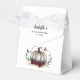 Pequeno tema da abóbora, caixa de chá de fraldas com ilustração de uma abóbora branca com brilho sujo de ouro, flores vermelhas burgundy e folhagem verde. Perfeito para um chá neutro no outono.