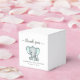 Caixas de presentes bonitas e neutras para o gênero para o seu chá de fraldas com "obrigado você" e "Um doce amendoim está a caminho" escritas numa mistura de tipografia de cinza macia e um roteiro de na moda com baloiços e uma aquarela verde de menta pastel de um elefante bebê. Personalize o nome da futura mãe e a data do chá em uma simples tipografia de cinza.