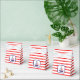Este obrigado de chá de fraldas divertido que você favorece as caixas apresentam um veleiro bonito em tons náuticos de vermelho, branco e azul em um fundo de listras vermelhas e brancas correspondentes. Personalize as costas com a sua escolha de texto especial para um chá de fraldas de bebê.