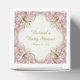 Linda caixa de chá de fraldas rosa e dourada com adorável menina em um lugar cor-de-rosa com um elegante fundo rosa e espiral dourado. Você pode adicionar texto ao topo da caixa no estilo de fonte e na cor de sua escolha.