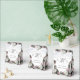 O design apresenta as imagens elegantes e realistas de rosas rosa suave e hortênsias brancas enquanto envolvem seu texto. A parte de cima da aba traz o monograma do casal feliz. Quando a aba é levantada, sua mensagem de gratidão é revelada! Os nomes da Noiva e do Noivo, junto com a data do casamento, são apresentados abaixo. O verso apresenta a imagem de um Crucifixo prateado acima de sua mensagem personalizável. A imagem de flores suaves e elegantes em cascata ao longo das laterais e na parte superior do produto cria um design elegante.
