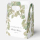 Caixa de lembrança elegante para chá de noiva com design de folhas de eucalipto em verde sálvia e bege sobre um fundo branco limpo. Personalizável com o nome da noiva e data do chá, é ideal para celebrações elegantes e inspiradas na natureza. Perfeita para guloseimas, pequenos presentes ou surpresas de agradecimento para seus convidados.