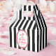 Esta caixa de favores de Derby tem um cavalo de corrida em aquarela com um jóquei de rosa rodeado por uma coroa de rosas vermelhas com a inscrição "Chá de Noiva". Há um fundo listrado preto e branco. Você pode personalizar com um nome e data.