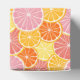 Frutas cítricas caprichosas em cores de limão, rosa, coral, laranja e toranja vermelha rubi. As fatias de cítricos desenhadas à mão incluem uma textura pintada à aguarela para uma adição suculenta ao convite colorido do chá de noiva.