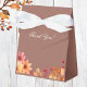 Celebrar a época do amor com essas bonitas caixas de favoritos do Chá de panela outono no amor personalizado. Perfeito para um Chá de panela de outono quente, essas encantadoras caixas apresentam flores e folhas autóctones em tons rústicos macios de castanhos e laranjas, com delicadas bagas vermelhas entrelaçadas sobre um fundo de mocha quente. As palavras Obrigado e seu Nome são mostradas elegantemente em uma fonte graciosa de script de caligrafia, adicionando um toque personalizado ao seu dia especial. Estas caixas botânicas de outono são a forma perfeita de expressar a vossa gratidão aos vossos convidados e tornar o vosso chá de panela inesquecível.
