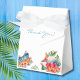 Personalize esta caixa de favoritos de Chás de panela Tropicais, onde o atrativo da praia encontra elegância chic! Embarque as vibrações do sol com esta caixa, adornada com óculos de sol e chapéu de sol lúdico contra um fundo branco nítido. Cada caixa apresenta flores vibrantes, cor-de-rosa, de hibisco, e folhas verdes esmagadoras, lembrando um oásis tropical. Perfeito para sua festa de chá de panela de praia ou piquenique.