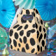 Esta design apresenta um padrão de impressão leopardo sobre um fundo laranja claro. O padrão é composto por manchas pretas que variam de tamanho e forma, criando um contraste com a cor laranja. Esta design é perfeita para quem ama impressões animais e quer