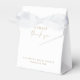 Caixa de lembrança de chá de noiva branca chic com "Um Doce Obrigada" em uma fonte moderna dourada e tipografia serif dourada elegante, o nome da noiva e a data do chá.