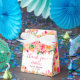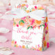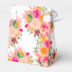 Bolsa de agradecimento moderna feminina e ousada com flores em aquarela e fonte de letra elegante para chá de panela com buquê de flores laranja, pêssego, rosa e verde brilhante