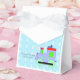 Um design divertido com um padrão de diamante aqua macio na frente e atrás acentuado por um pequeno trem de chocolate.