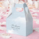 Celebre a noiva com caixas de lembrancinhas temáticas de casamento na nuvem 9 azuis elegantes. O design cria uma atmosfera minimalista e encantadora para o evento, para um dia repleto de amor, alegria e momentos inesquecíveis. Use as ferramentas de design para personalizar o texto e as fontes. Navegue pela nossa Coleção de Casamento na Nuvem 9 para decoração de festa e itens personalizados correspondentes.