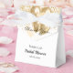 Favor de festa de noiva elegante, clássico, glamoroso. Um fundo branco elegante com brilho dourado falso e balões dourados. Com o texto: Chuva de Presentes e Obrigado escrito com um estilo de letra manuscrita moderna. Personalize e adicione um nome e uma data.