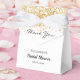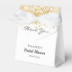 Elegantes, clássicos, glamourosos favores de festa de Chuva de presentes. Um fundo branco elegante com brilho dourado falso. Com o texto: Chuva de presentes e Obrigado escrito com uma fonte moderna de letra manuscrita. Personalize e adicione um nome e uma data.