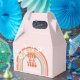 Retro inspirado Cinco é uma caixa de favoritos de festa de aniversário Vibe com estilo hippie arco-íris, margarida e fontes e cores boho.