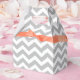 Cinza moderna e padrão zigzag branco ou chevron e caixa de presente de design de fita coral. Personalize o texto no verso com uma mensagem especial para os convidados.