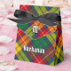 Crachá da crista buchana rodeado por uma correia e fivela sobre fundo de tartã clã. Texto personalizado e monograma.