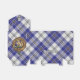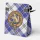 Crachá da crista Clan MacPherson rodeado por uma correia e fivela sobre tartã azul. Texto personalizado e monograma.
