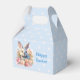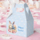 Uma pequena caixa de favores com uma imagem em aquarela. Um coelhinho branco cinza rodeado por uma guirlanda de rosas rosa e pêssego. Para amantes de coelhos e temas de Páscoa e aniversários e celebrações.