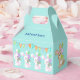 Uma caixa de favor de Páscoa divertida com coelhos castanhos e brancos. Esta design começa com um fundo pastel. Nos painéis frontal e traseiro há uma fileira de coelhos brancos, ovos de Páscoa de cor clara de carregando. Acima dos coelhos há uma faixa que diz "FELZ PASCOA". Nos painéis laterais, uma versão maior do coelho branco, em marrom. O texto pode ser personalizado.