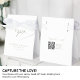 Fonte moderna, mínima, de escrita manual, branca, com seu nome, data e QR Code Photo Sharing Box (Caixa de Favoritos de Compartilhamento de Fotos de Código QR). Basta editar seu produto em alguns minutos. Celebre seu amor com nossas Caixas de Favor personalizadas.