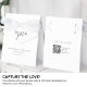 Fonte moderna, mínima, de escrita manual, branca, com seu nome, data e QR Code Photo Sharing Box (Caixa de Favoritos de Compartilhamento de Fotos de Código QR). Basta editar seu produto em alguns minutos. Celebre seu amor com nossas Caixas de Favor personalizadas.