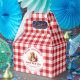Preencha essas caixas de favoritos com biscoitos de Natal e doces para dar à família, amigos, colegas de trabalho, clientes ou entregá-los em uma festa ou função de trabalho. A caixa de favoritos tem um design circular com fundo de xadrez vermelho e branco, uma imagem aquosa de biscoitos de Natal e texto totalmente personalizável para atender às suas necessidades.