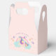 Caixa de favores mágicos personalizados do arco-íris unicórnio em fundo de rosa claro. Menina, fofa e divertida.